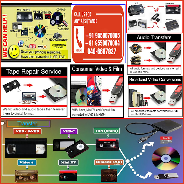 VHS Hi 8 Cassette tape to DVD or CD or Pen drive in a short time at a low price at
